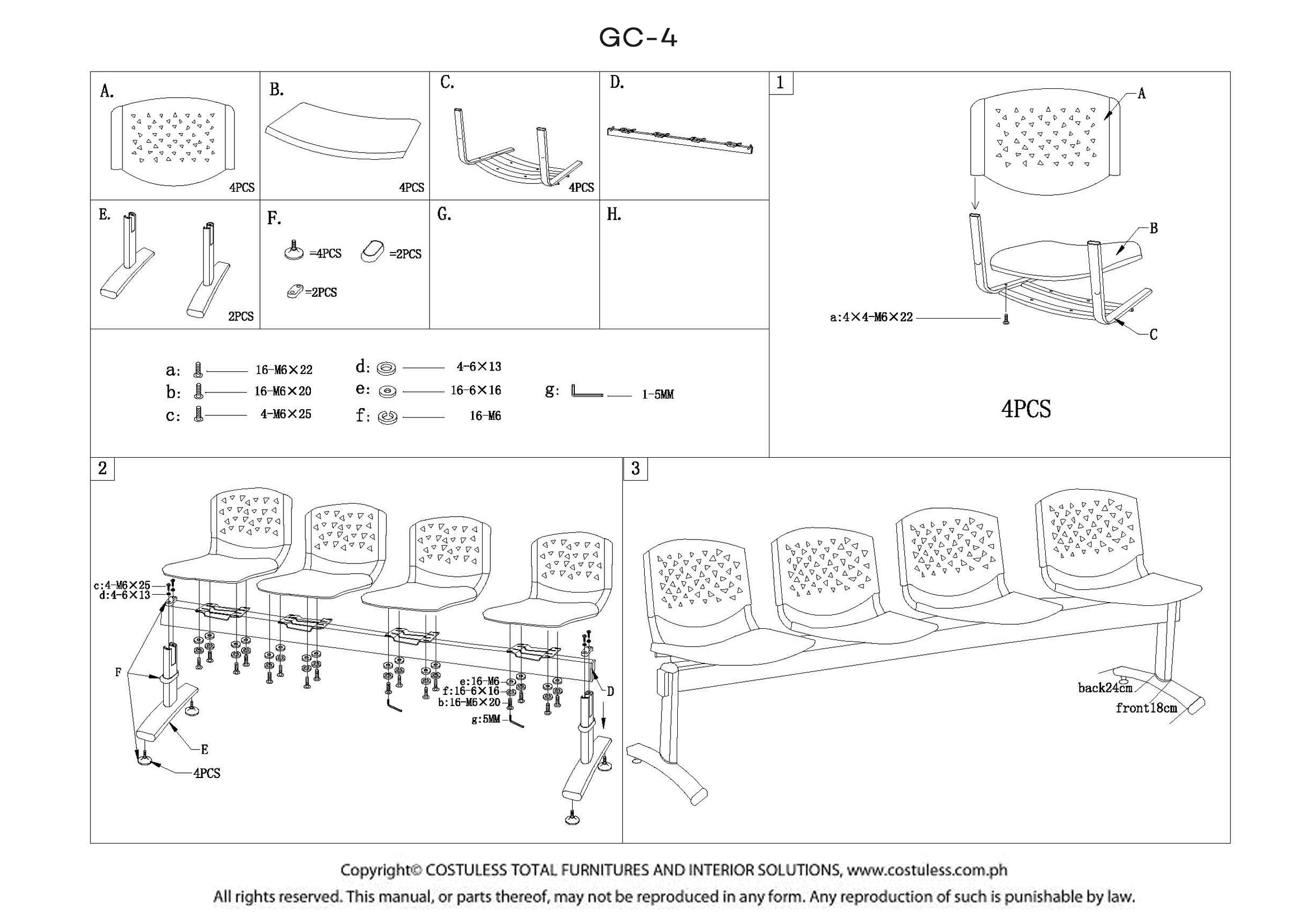 Ergodynamic Black Deluxe Gang Chair 4 Seater, features thick powder coated steel frame and elegant design