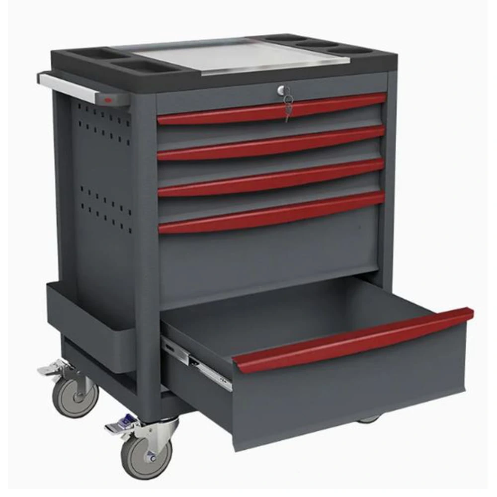 This rolling tool chest is specially designed for car maintenance and automotive clubs, and its stylish appearance has won the favor of many customers. It features 3 small drawers and 2 large drawers to meet the storage needs of various tools. The stainless steel tray at the top is convenient for temporary tool storage, and the 4 PVC wheels at the bottom provide great convenience for mobile repairs.