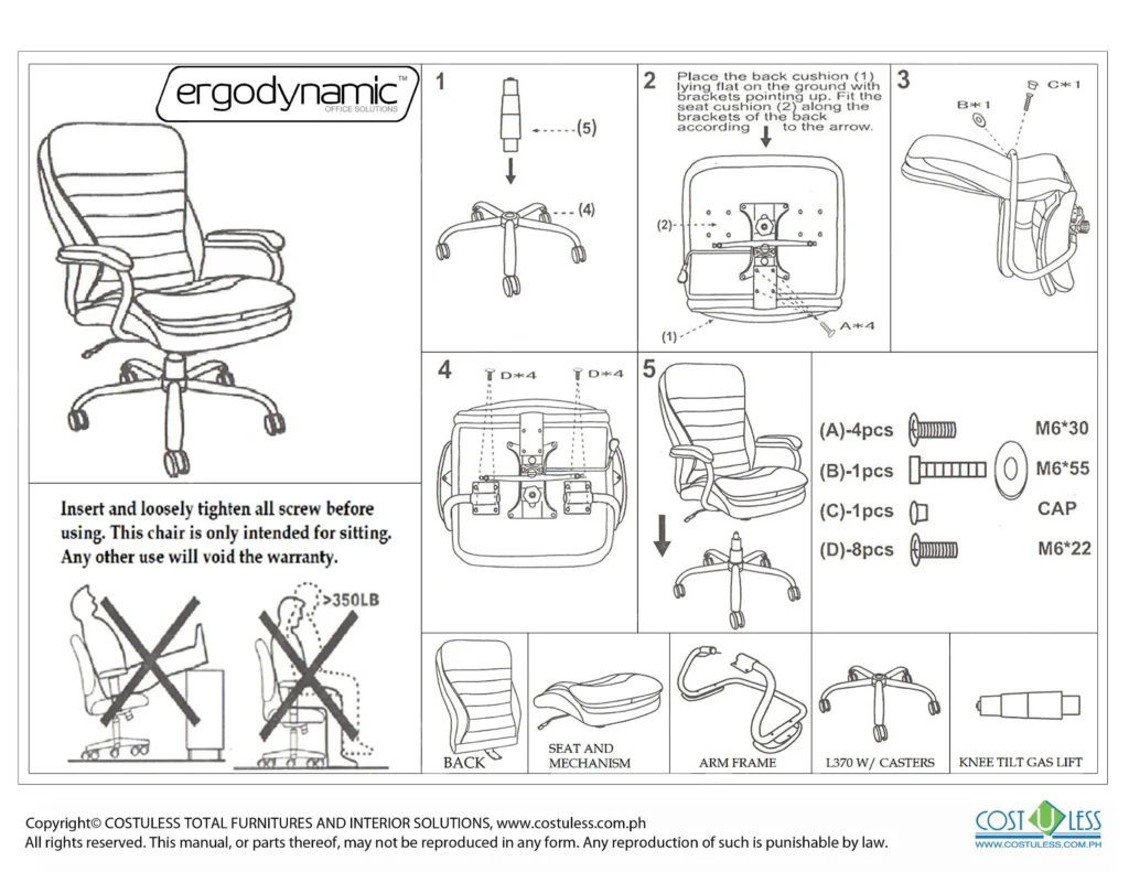 *“If ordered via Lazada or Shopee or for provincial orders: This product will be shipped knock-down/flat packed and will require assembly by the client. Assembly Instructions are included in the package.”