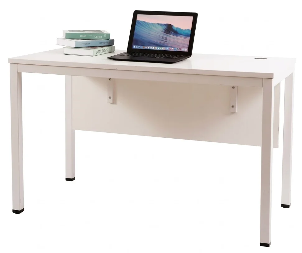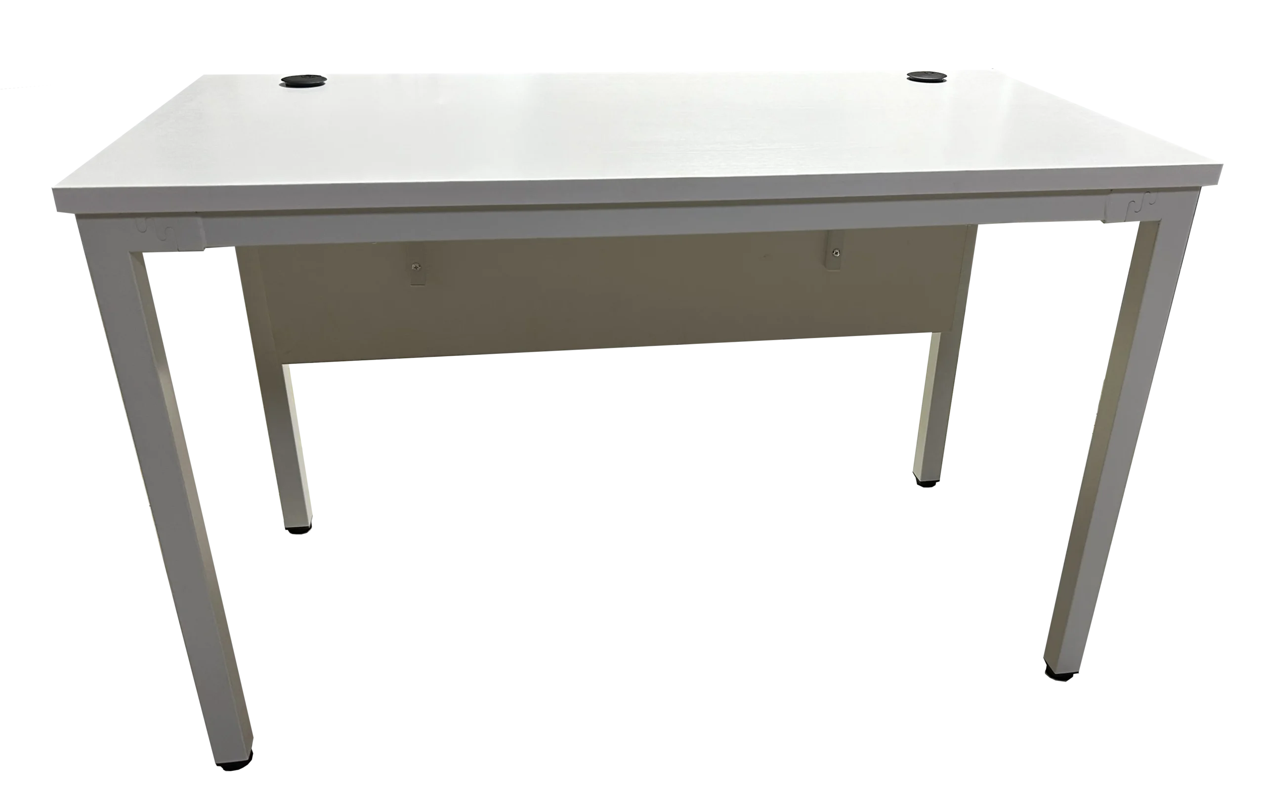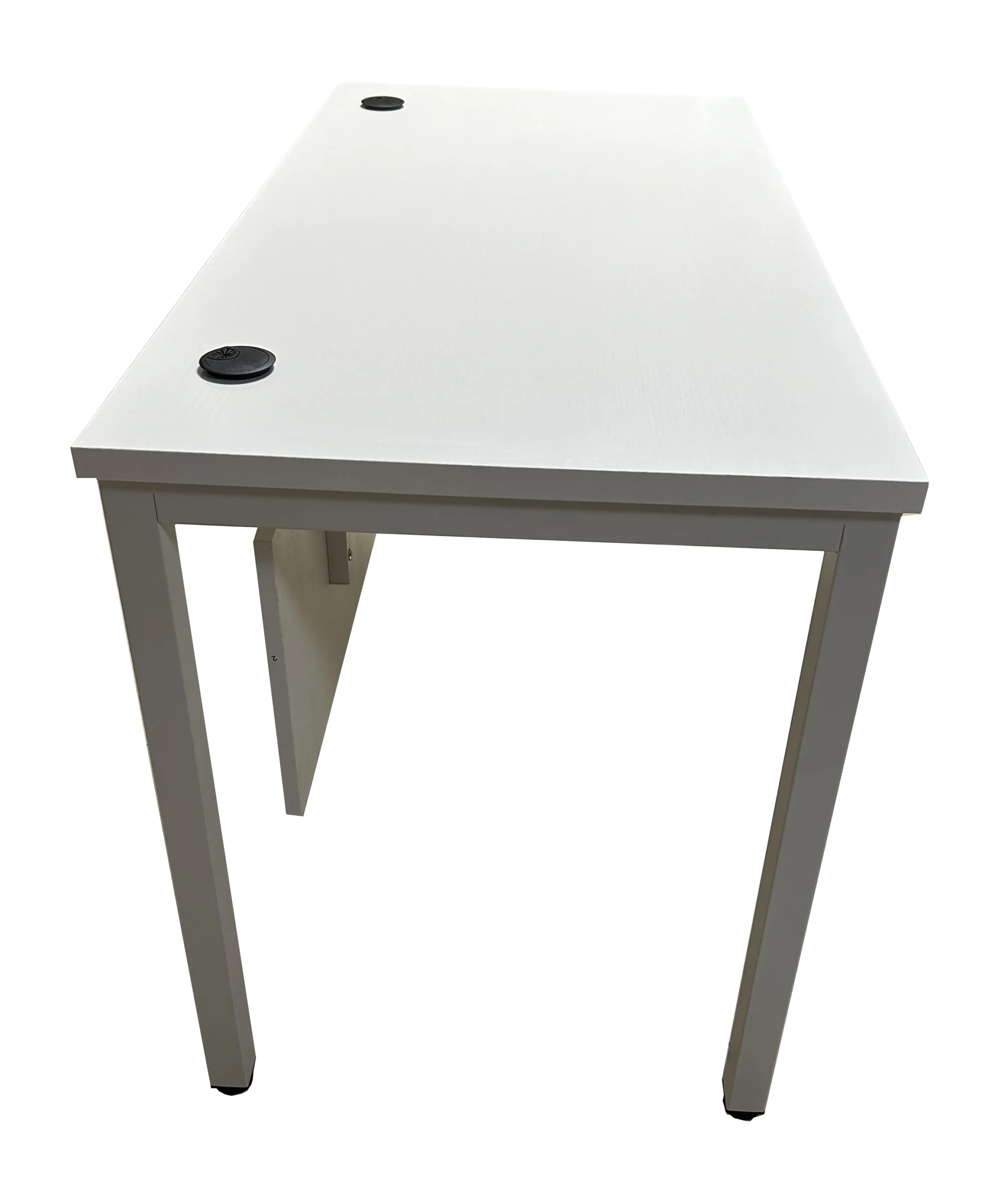 Ergodynamic FREE STANDING DELUXE TABLE 1200x600x750mm, White frame, White top in 25mm thickness, White front panel in 15mm thickness, No hole on the front panel, Two line holes on the main top