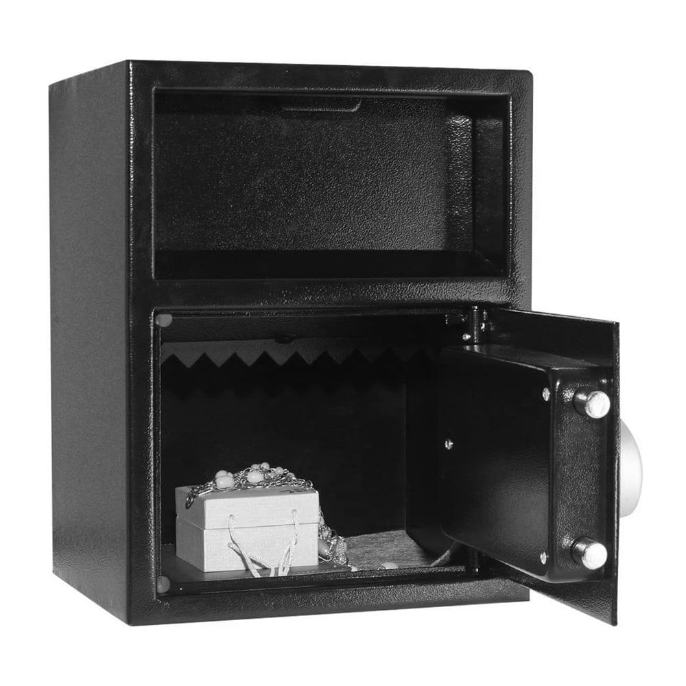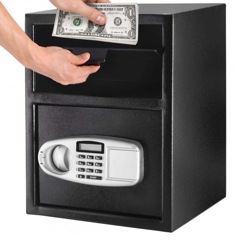 iSAFE™ Electronic Digital Drop deposit Safe is designed with a delivery port which has a saw-tooth edge tilting baffle to prevent thieves and protect your valuables H450*W350*D300mm 2mm body, 6mm door