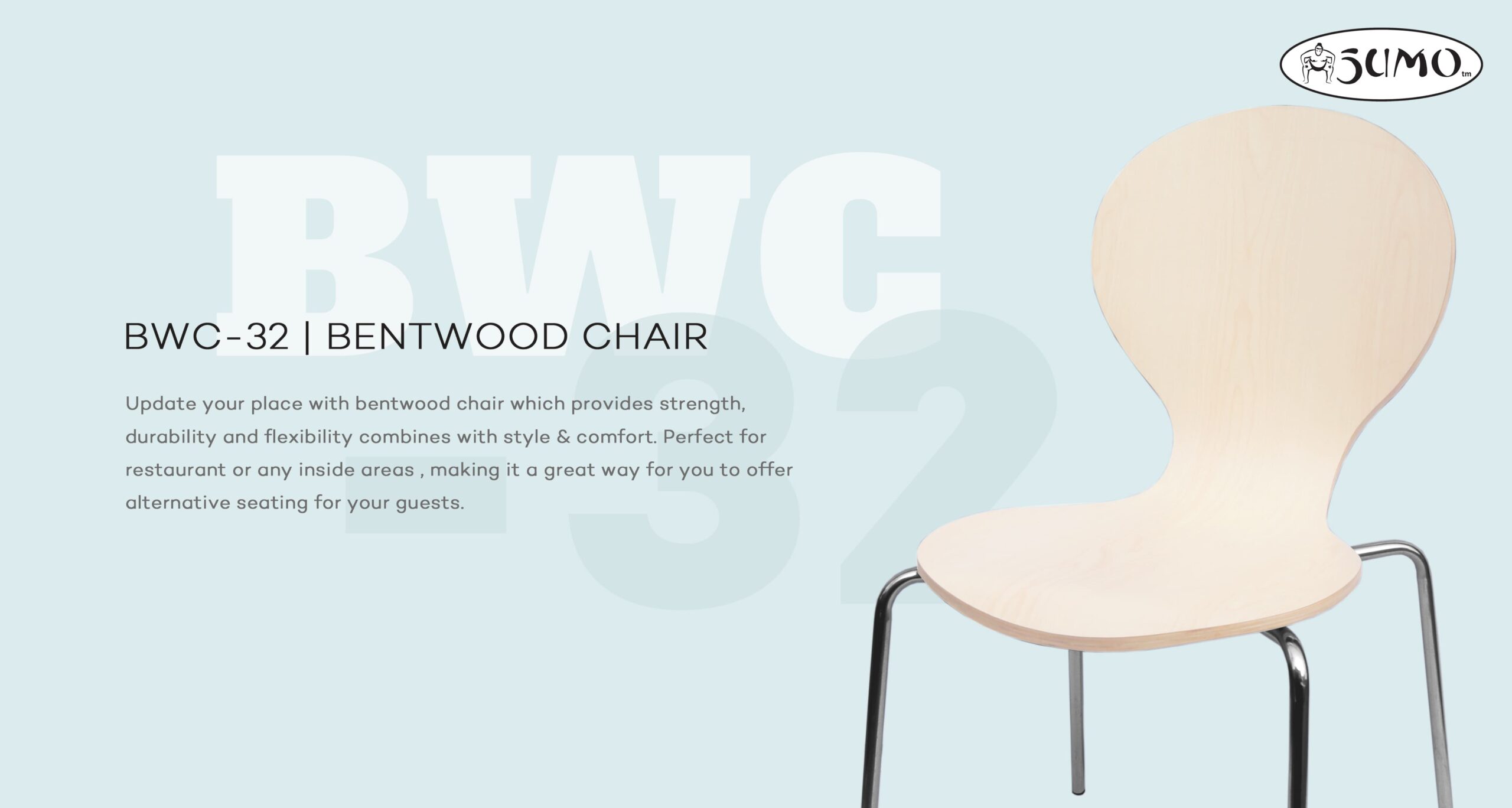 Sumo™ Designer Bentwood Chair in Stainless Steel Frame
