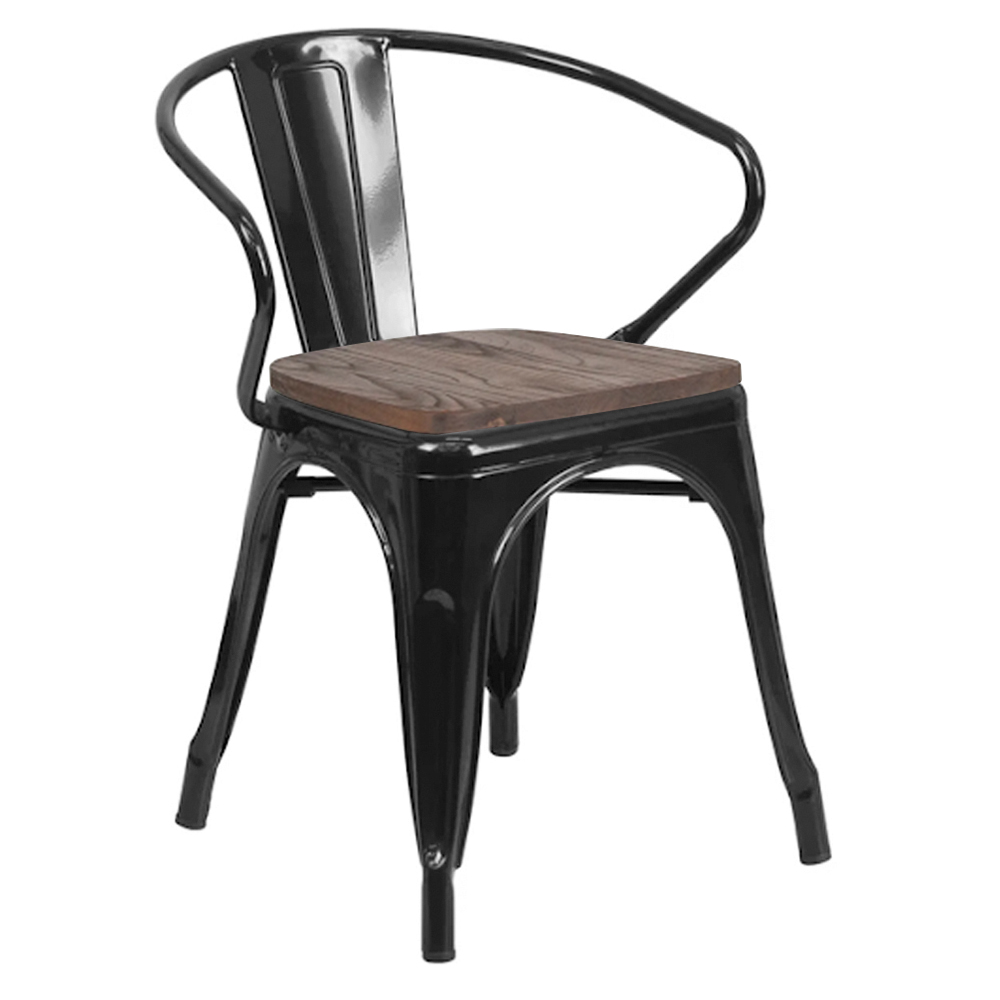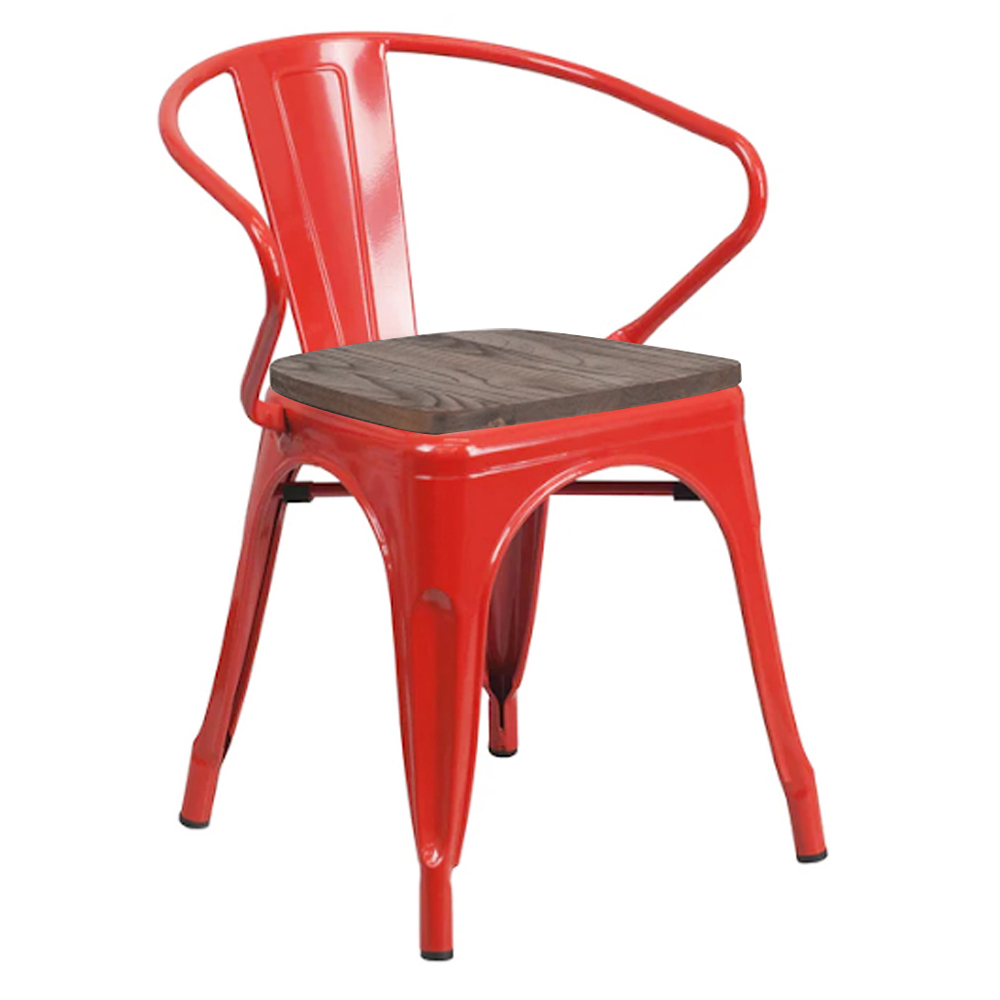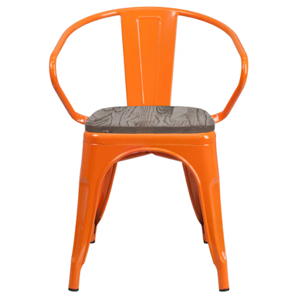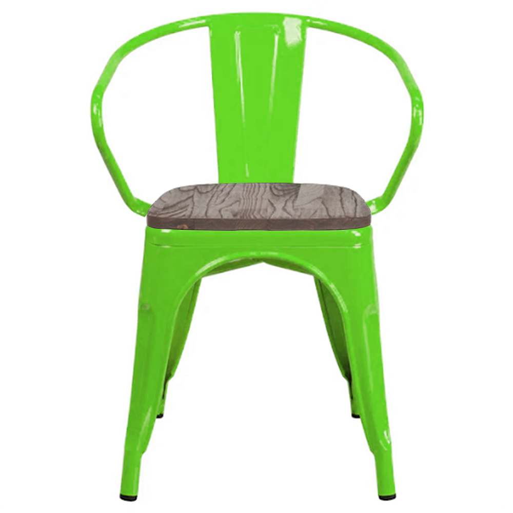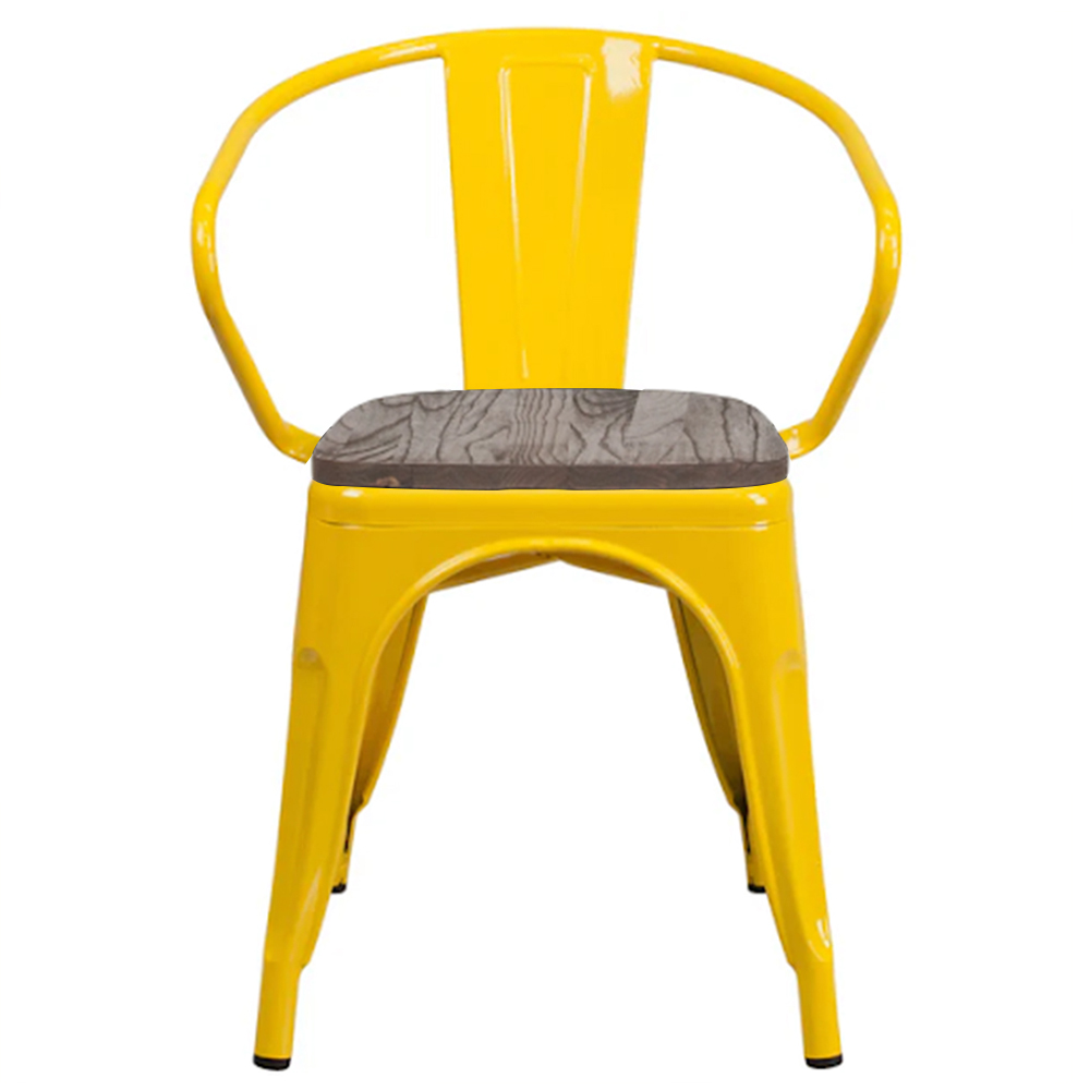 Sumo™ All Steel Tolix Arm Chair, with Wood on Seater Powder Coated Steel Frame, Solid Steel Welded Construction