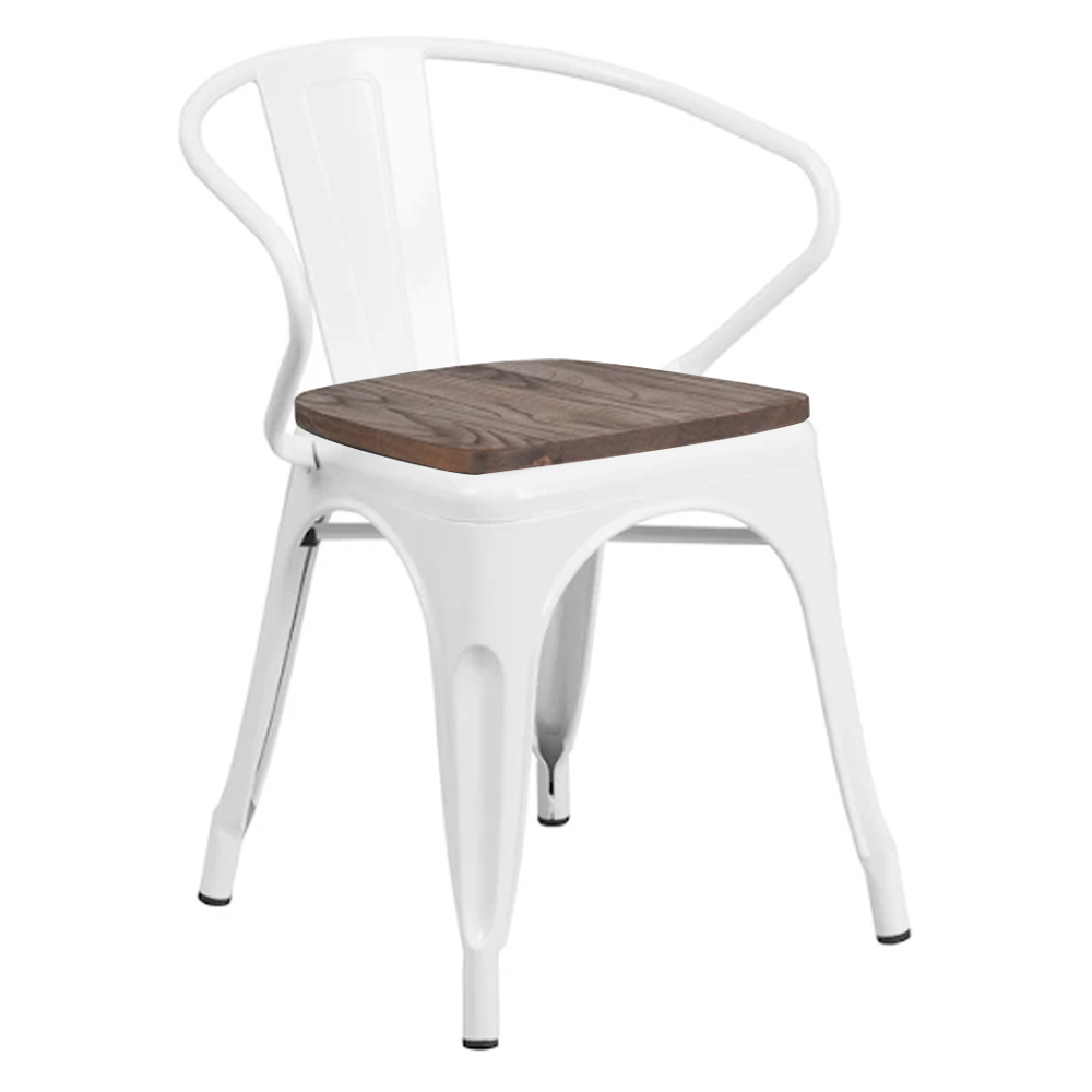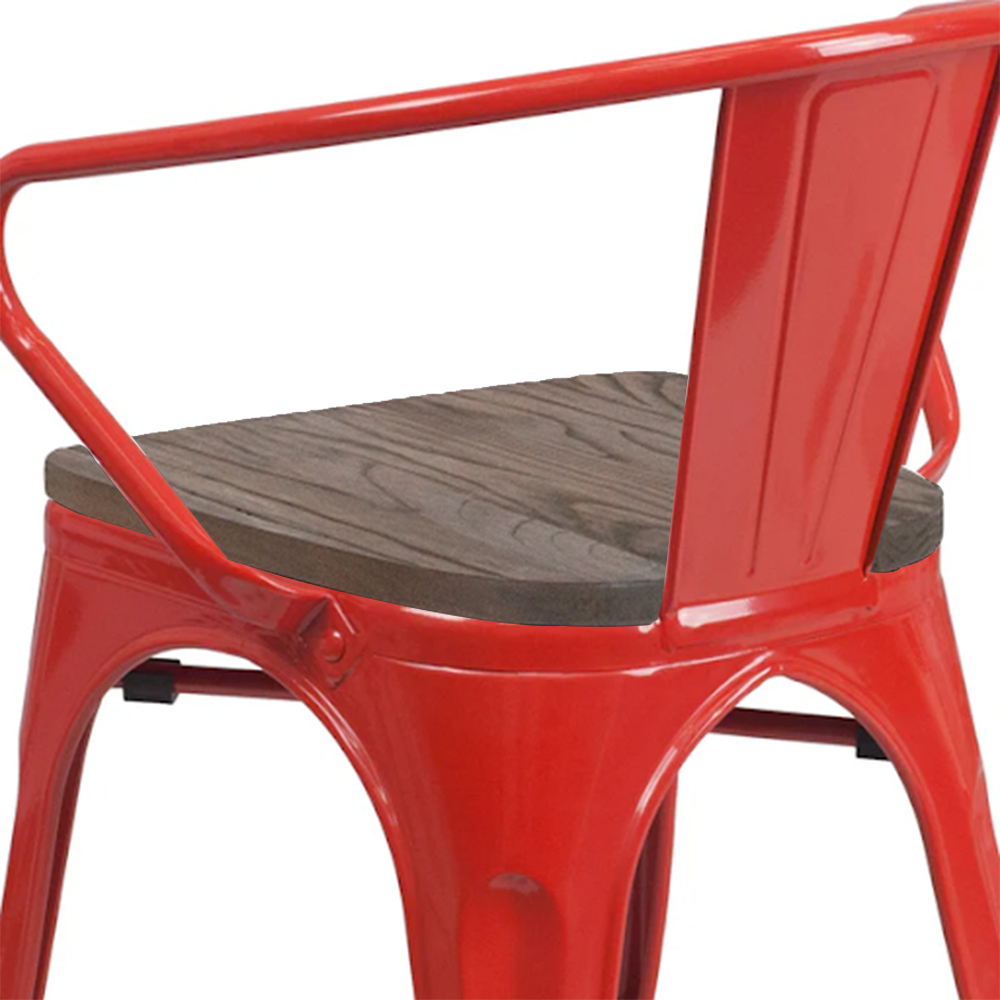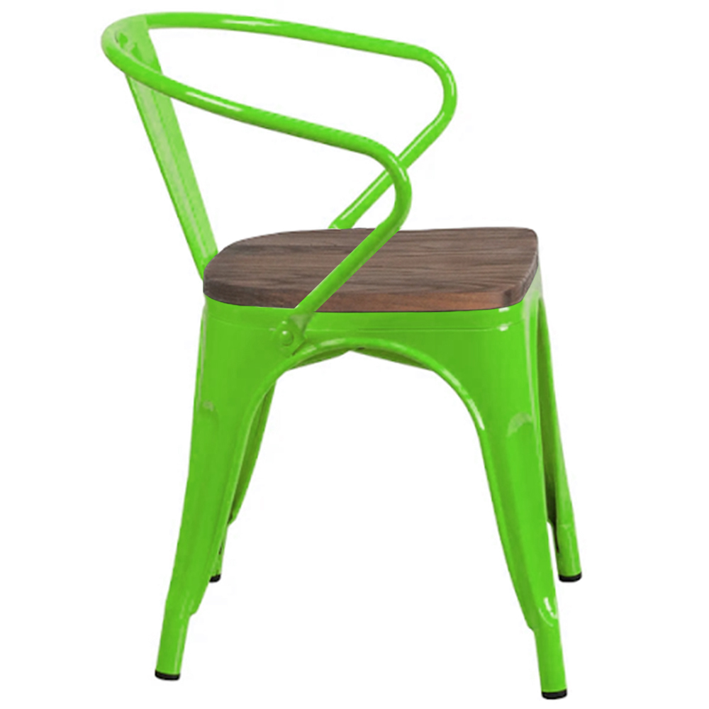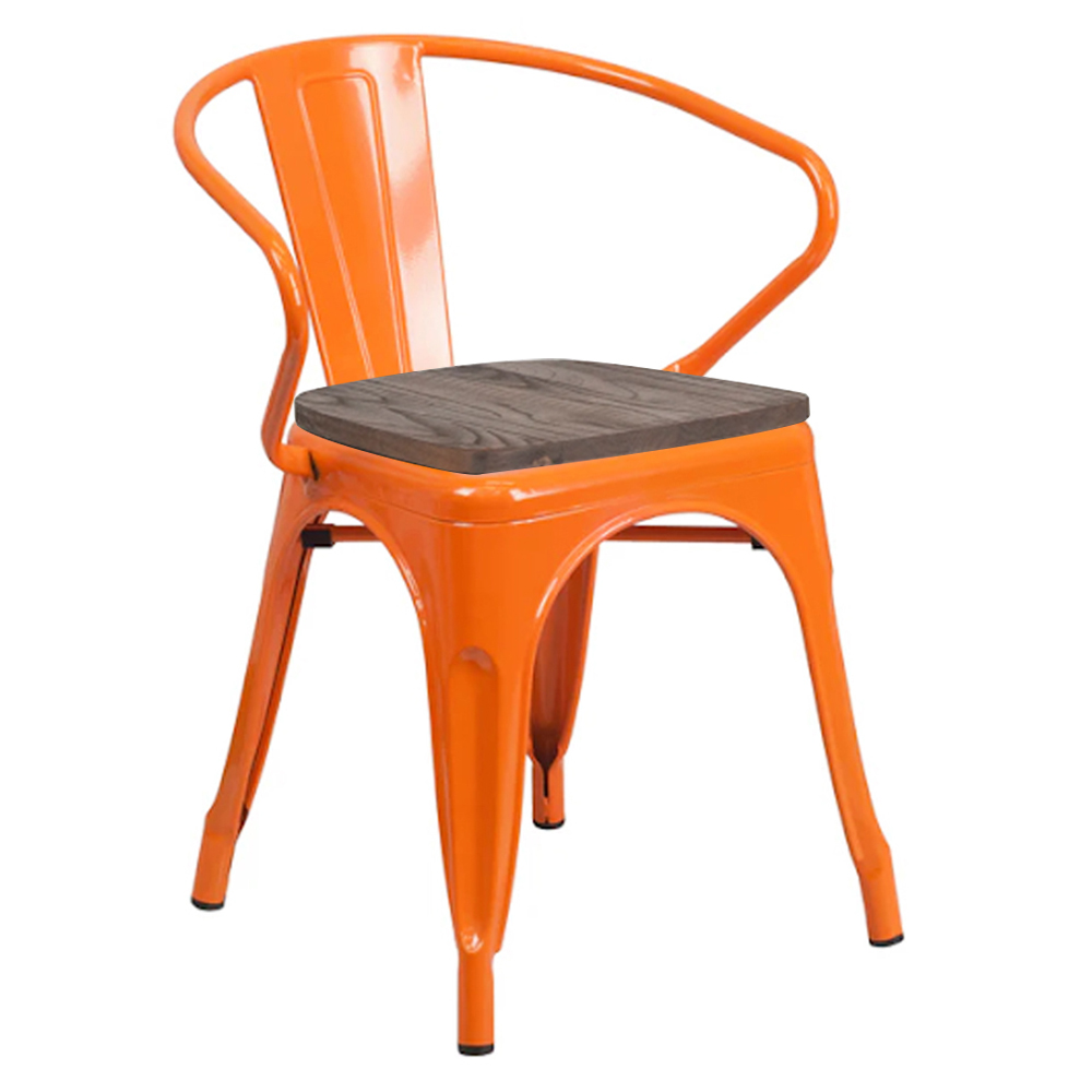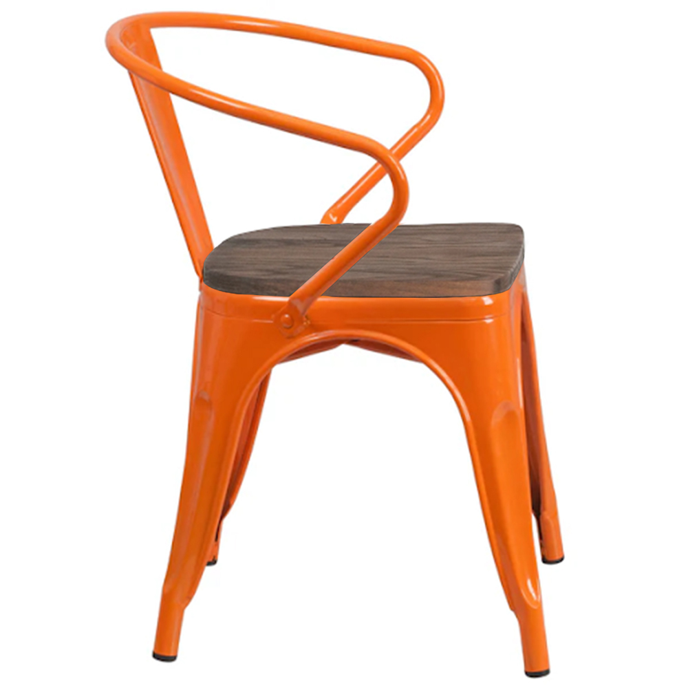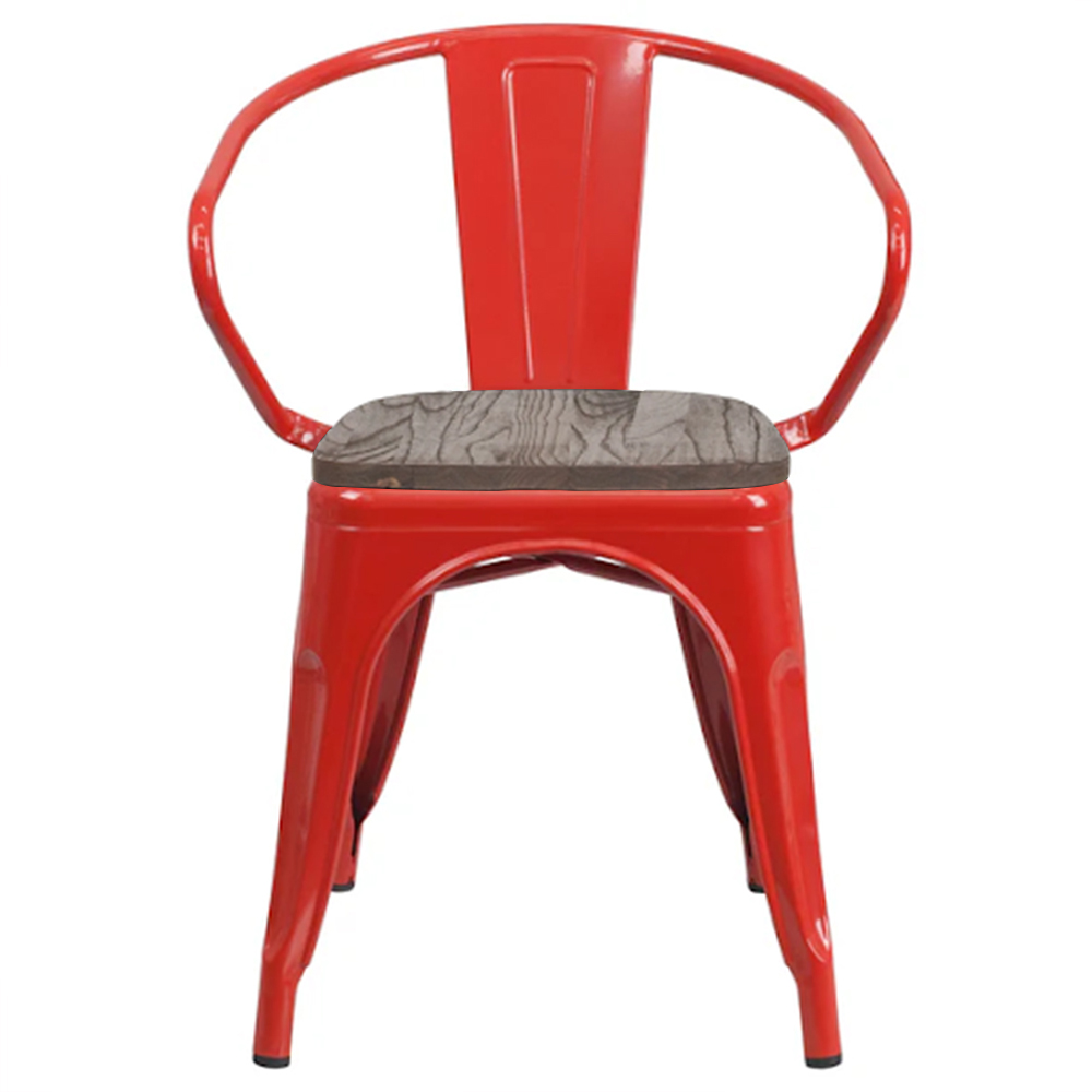 Sumo™ All Steel Tolix Arm Chair, with Wood on Seater Powder Coated Steel Frame, Solid Steel Welded Construction