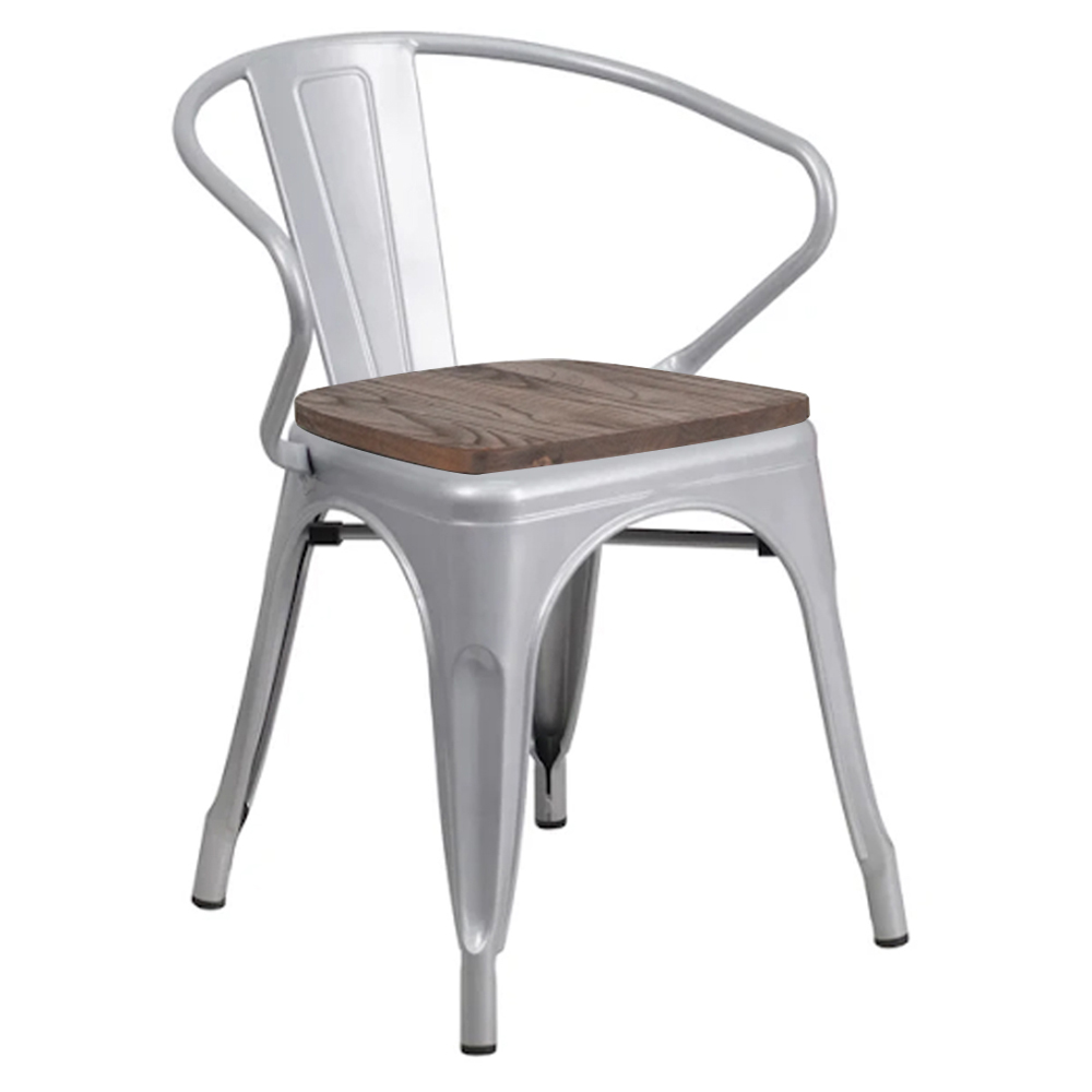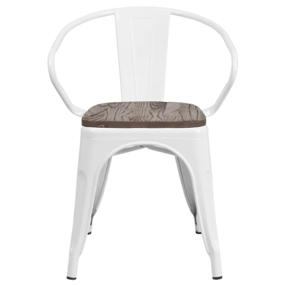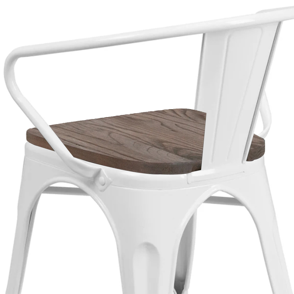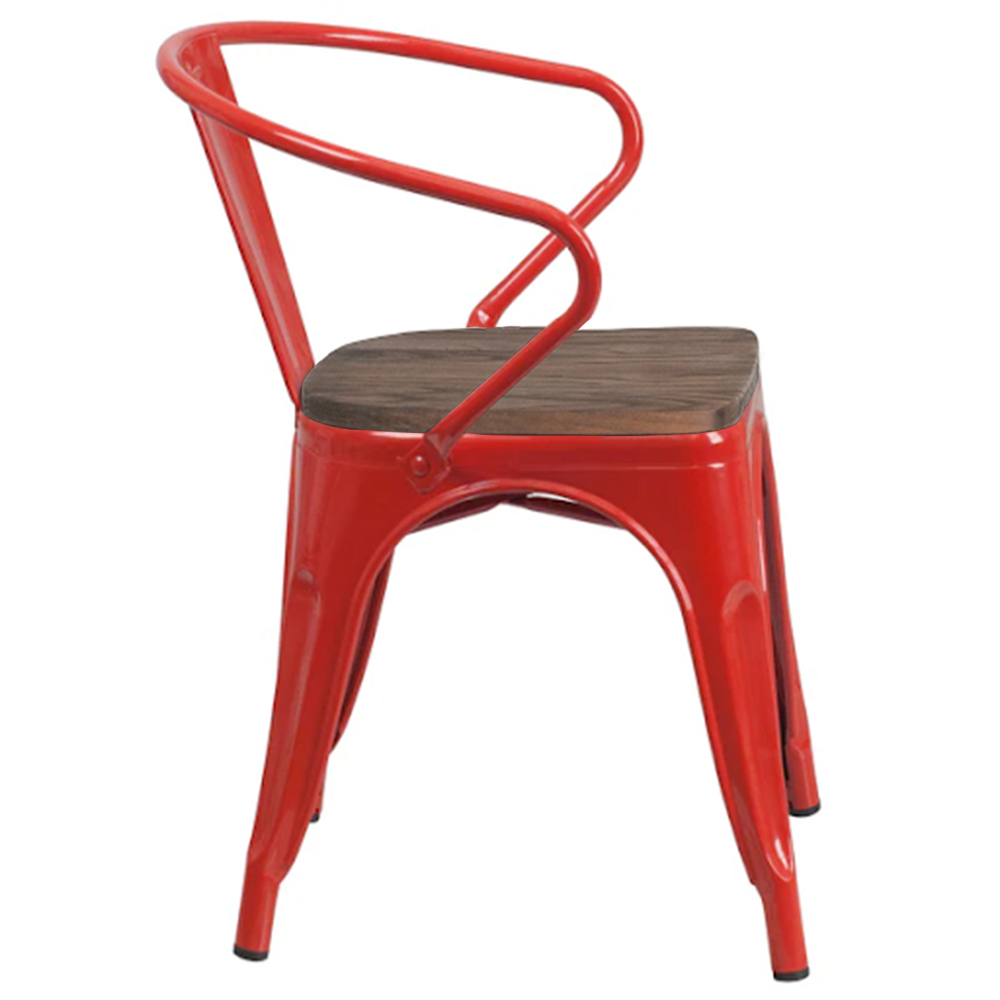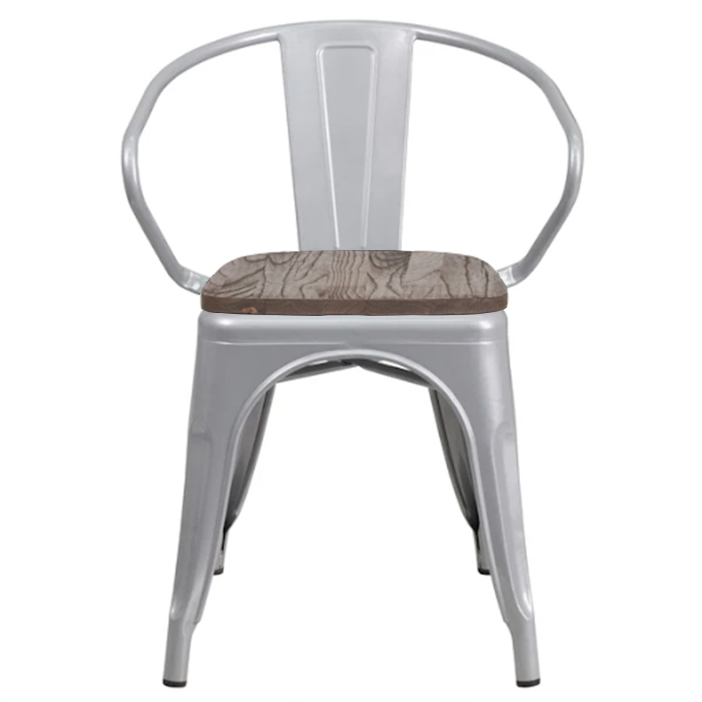 Sumo™ All Steel Tolix Arm Chair, with Wood on Seater Powder Coated Steel Frame, Solid Steel Welded Construction